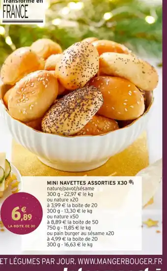 En plus de l'offre Mini navettes assorties x30, Intermarché Hyper propose une large gamme de produits. Consultez le Catalogue Intermarché Hyper hebdomadaire pour découvrir les meilleures offres et promotions. En plus de Mini navettes assorties x30, il y a aussi : Mini navettes assorties x30, Burger - mini navettes assorties x30 & Navettes assorties.