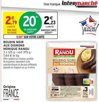 Actuellement en offre chez Intermarché Hyper : MONIQUE RANOU Boudin noir aux oignons ✅ Valable du 24-02 au 8-03.