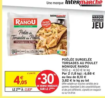 Actuellement en offre chez Intermarché Hyper : Monique ranou poêlée surgelée torsades au poulet ✅ Valable du 20-01 au 1-02.