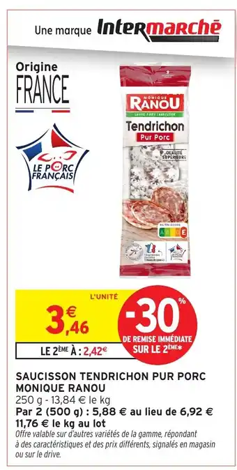 MONIQUE RANOU Saucisson tendrichon pur porc offres et promotions en ligne chez Intermarché Hyper