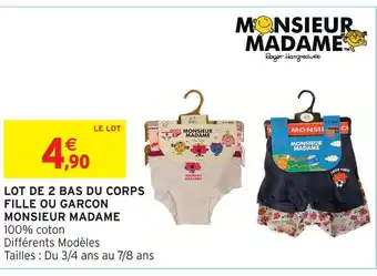 Monsieur madame lot de 2 bas du corps fille ou garçon : offres et promos Intermarché Hyper à découvrir