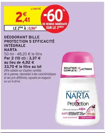 Actuellement en offre chez Intermarché Hyper : NARTA Déodorant bille protection 5 efficacité intégrale ✅ Valable du 3-03 au 15-03.
