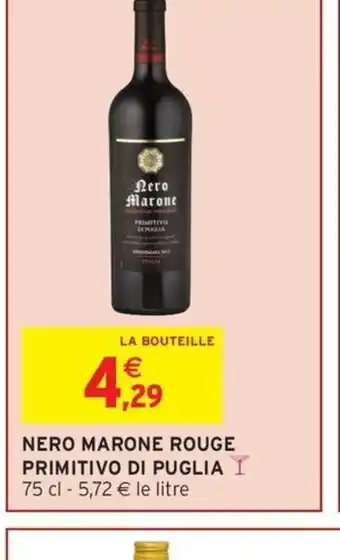 Actuellement en offre chez Intermarché Hyper : Nero marone rouge primitivo di puglia ✅ Valable du 20-01 au 25-01.