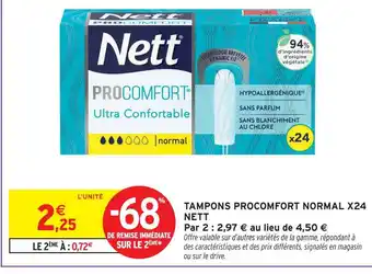 Nett tampons procomfort normal offres et promotions en ligne chez Intermarché Hyper