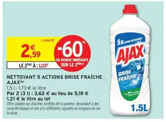 Actuellement en offre chez Intermarché Hyper : NETTOYANT 5 ACTIONS BRISE FRAÎCHE AJAX ✅ Valable du 10-03 au 22-03.