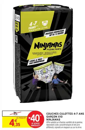 Actuellement en offre chez Intermarché Hyper : Ninjamas Couches culottes 4-7 ans garçon x10 ✅ Valable du 8-04 au 19-04.