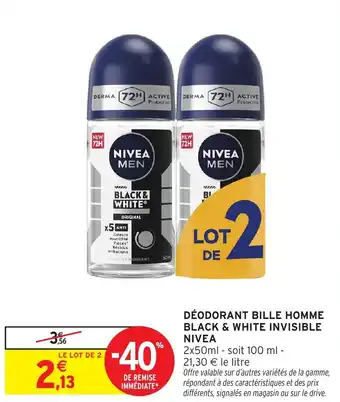 Nivea Déodorant bille homme black & white invisible offres et promotions en ligne chez Intermarché Hyper