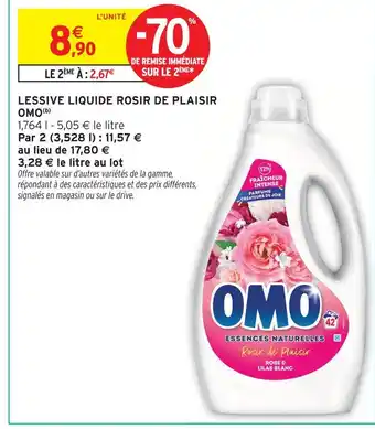 Actuellement en offre chez Intermarché Hyper : Omo lessive liquide rosir de plaisir ✅ Valable du 14-04 au 26-04.