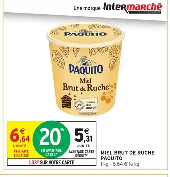Actuellement en offre chez Intermarché Hyper : PAQUITO Miel brut de ruche ✅ Valable du 3-02 au 22-02.