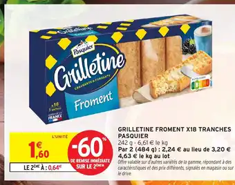 Actuellement en offre chez Intermarché Hyper : PASQUIER Grilletine froment x18 tranches ✅ Valable du 3-03 au 15-03.