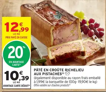Actuellement en offre chez Intermarché Hyper : Pâté en croûte richelieu aux pistaches ✅ Valable du 10-02 au 22-02.
