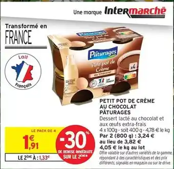Actuellement en offre chez Intermarché Hyper : Paturages - petit pot de crème au chocolat ✅ Valable du 3-02 au 15-02.