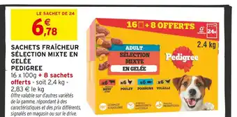 Actuellement en offre chez Intermarché Hyper : Pedigree sachets fraîcheur sélection mixte en gelée ✅ Valable du 13-01 au 25-01.