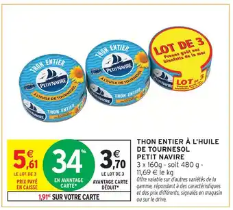 Petit navire thon entier à l'huile de tournesol offres et promotions en ligne chez Intermarché Hyper