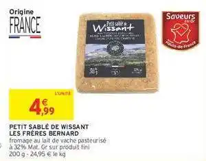 Actuellement en offre chez Intermarché Hyper : PETIT SABLÉ DE WISSANT LES FRÈRES BERNARD ✅ Valable du 3-02 au 15-02.
