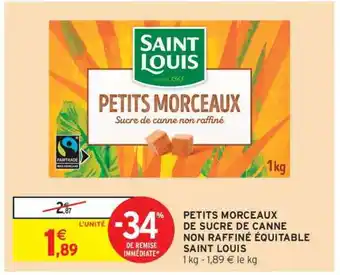 PETITS MORCEAUX DE SUCRE DE CANNE NON RAFFINÉ ÉQUITABLE SAINT LOUIS offres et promotions en ligne chez Intermarché Hyper