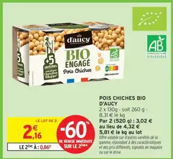 Actuellement en offre chez Intermarché Hyper : POIS CHICHES BIO D'AUCY ✅ Valable du 27-01 au 8-02.