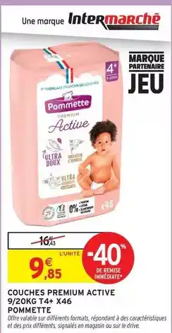 Pommette - couches premium active 9/20kg t4+ x46 : offres et promos Intermarché Hyper à découvrir