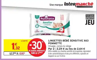 Actuellement en offre chez Intermarché Hyper : POMMETTE Lingettes bébé sensitive x63 ✅ Valable du 6-01 au 18-01.
