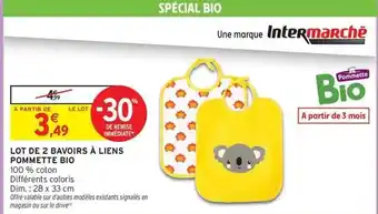 Actuellement en offre chez Intermarché Hyper : Pommette - lot de 2 bavoirs à liens ✅ Valable du 6-01 au 18-01.