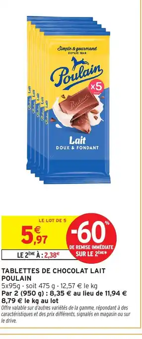 POULAIN Tablettes de chocolat lait offres et promotions en ligne chez Intermarché Hyper