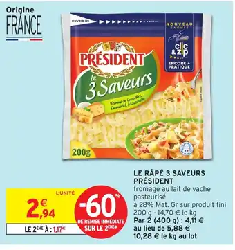 Président Le râpé 3 saveurs : offres et promos Intermarché Hyper à découvrir