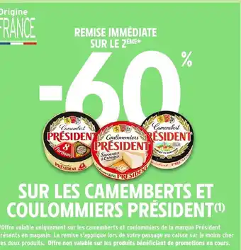 Actuellement en offre chez Intermarché Hyper : PRÉSIDENT Sur les camemberts et coulommiers ✅ Valable du 17-03 au 29-03.