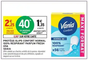 Actuellement en offre chez Intermarché Hyper : Protège-slips Confort Normal 100% Respirant Parfum Fresh X56 ✅ Valable du 21-04 au 3-05.