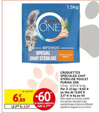 Actuellement en offre chez Intermarché Hyper : Purina one croquettes spéciales chat stérilisé poulet ✅ Valable du 13-01 au 25-01.