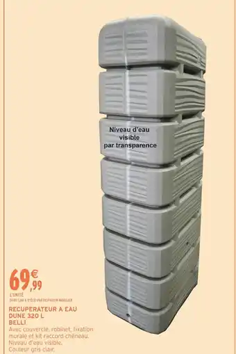 L'offre est disponible dans plusieurs magasins, vérifiez tous les produits pour obtenir le Recuperateur a eau dune le moins cher. Si vous souhaitez savoir si l'article est en vente avec une plus grosse remise dans un autre magasin, consultez la catégorie 'Supermarché'. Ces offres pourraient aussi vous intéresser : Récupérateur d’eau dune 300 l, Récupérateur à eau mural & Récupérateur à Eau Mural 300 L.