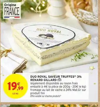 Actuellement en offre chez Intermarché Hyper : RENARD GILLARD Duo royal saveur truffes 3% ✅ Valable du 16-12 au 28-12.