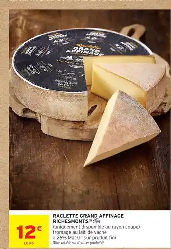 Actuellement en offre chez Intermarché Hyper : RICHESMONTS Raclette grand affinage ✅ Valable du 17-02 au 1-03.
