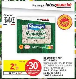 Roquefort AOP Pâturages offres et promotions en ligne chez Intermarché Hyper