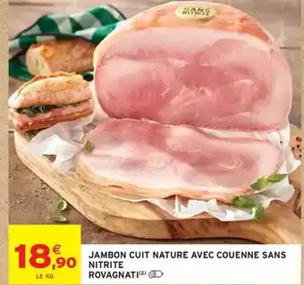 Actuellement en offre chez Intermarché Hyper : Rovagnati - jambon cuit nature avec couenne sans nitrite ✅ Valable du 3-02 au 15-02.