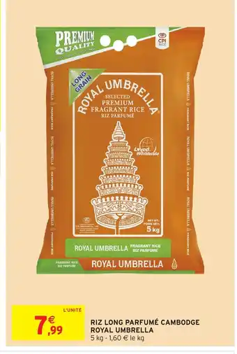 Actuellement en offre chez Intermarché Hyper : ROYAL UMBRELLA Riz long parfumé cambodge ✅ Valable du 3-03 au 15-03.