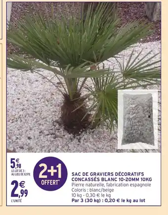Actuellement en offre chez Intermarché Hyper : Sac de graviers décoratifs concassés blanc 10-20mm ✅ Valable du 24-02 au 15-03.