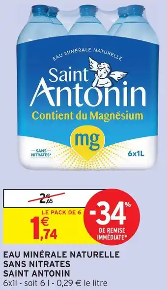 Actuellement en offre chez Intermarché Hyper : Saint antonin eau minérale naturelle sans nitrates ✅ Valable du 10-03 au 22-03.