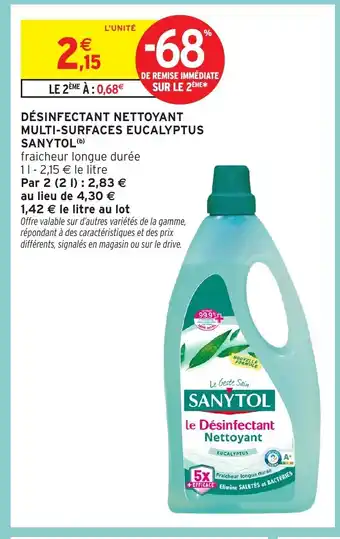 SANYTOL Désinfectant nettoyant multi-surfaces eucalyptus : offres et promos Intermarché Hyper à découvrir