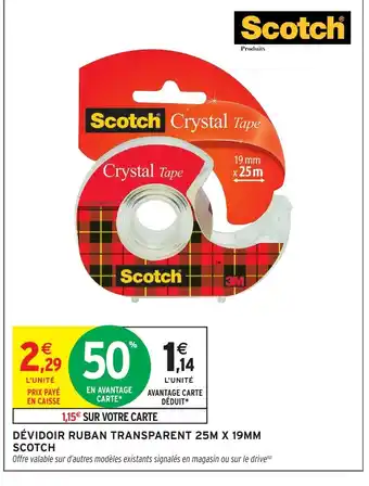 Actuellement en offre chez Intermarché Hyper : SCOTCH Dévidoir ruban transparent 25m x 19mm ✅ Valable du 10-02 au 22-02.