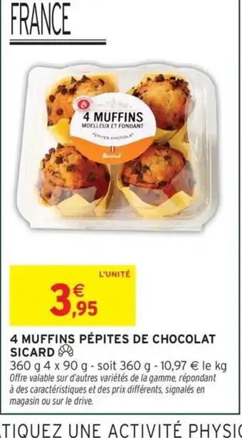 Offre SICARD 4 muffins pépites de chocolat chez Intermarché Hyper