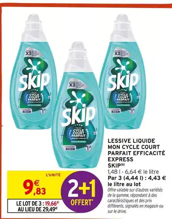 Actuellement en offre chez Intermarché Hyper : Skip lessive liquide mon cycle court parfait efficacité express ✅ Valable du 13-01 au 25-01.