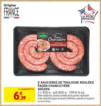 Socopa 2 saucisses de toulouse roulées façon charcutière offres et promotions en ligne chez Intermarché Hyper
