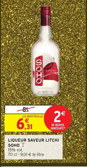 Actuellement en offre chez Intermarché Hyper : SOHO Liqueur saveur litchi ✅ Valable du 16-12 au 28-12.
