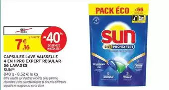 Sun - capsules lave vaisselle 4 en 1 pro expert regular offres et promotions en ligne chez Intermarché Hyper
