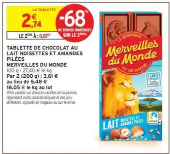 Offre Tablette de chocolat au lait noisettes et amandes pilées chez Intermarché Hyper