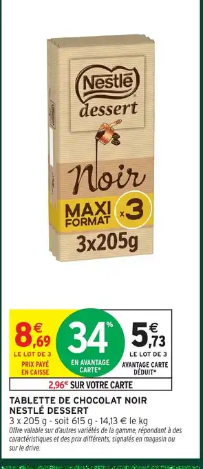 Tablette de chocolat noir nestlé dessert offres et promotions en ligne chez Intermarché Hyper