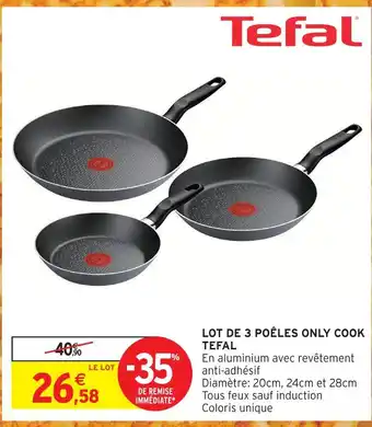 En plus de l'offre Tefal lot de 3 poêles only cook, Intermarché Hyper propose une large gamme de produits. Consultez le Catalogue Intermarché Hyper hebdomadaire pour découvrir les meilleures offres et promotions. En plus de Tefal lot de 3 poêles only cook, il y a aussi : Tefal lot de 3 poêles only cook, LOT DE 3 POÊLES ONLY COOK TEFAL & Lot de 3 poêles.