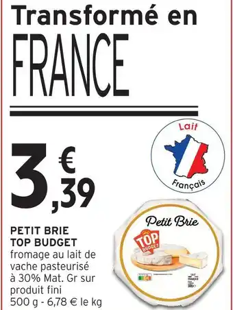 Actuellement en offre chez Intermarché Hyper : Top budget petit brie ✅ Valable du 10-03 au 22-03.