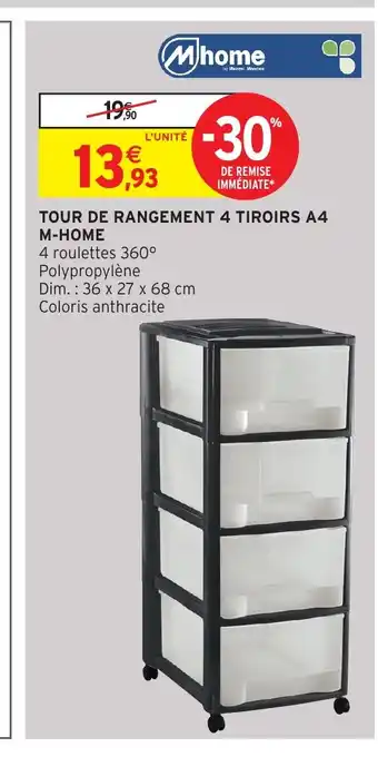 Actuellement en offre chez Intermarché Hyper : Tour de rangement 4 tiroirs a4 ✅ Valable du 3-03 au 15-03.