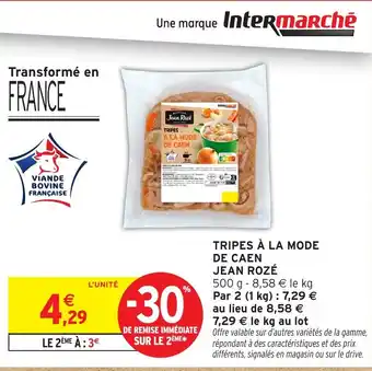 Actuellement en offre chez Intermarché Hyper : Tripes à la mode de caen jean rozé ✅ Valable du 30-12 au 11-01.